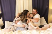 The team of midwives comes upstairs, offers hugs before they go. Everyone should hug the people who bring their baby into the world. I don’t know if I’ve ever meant a hug more. They leave, and we’re home alone in bed and eating cereal.